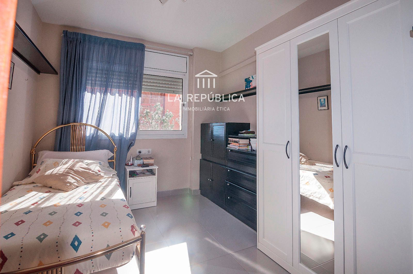 Aquesta segona planta, en una finca de l’any 2001 amb doble ascensor, destaca pels 115 m² i una distribució que separa la zona de dia de la nit. El pis consta de 3 habitacions, antigament eren 4 habitacions. Una és habitació doble, tipus suite amb vestidor incorporat, gràcies a una antiga habitació individual. I dues individuals àmplies, oferint espai per a tota la família. També disposa d’un segon bany complet amb banyera.